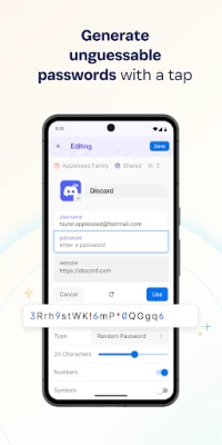 Use the built-in password generator to create strong, unguessable passwords with a tap, then access those secure passwords on any device. 1Password works across popular operating systems as a browser extension, mobile app, or desktop app.